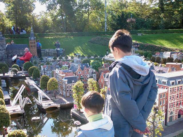 Ali’nin söylediği otobüse binip, Den Haag‘ın iç kesimlerinde kısa bir süre ilerledikten sonra MADURODAM‘ın kapısında iniyoruz. ( www.madurodam.nl ) Başka ülkelerde de gördüm, ama Madurodam, şimdiye kadar gördüğüm en iyi düzenlenmiş ve en eğlenceli minyatür şehir parkı. Hollanda’nın belli başlı mimari yapıları ve diğer özellikleri anlatılmış. Çoğunun hareketli ve mizansenli olması ilgiyi daha çok çekiyor.