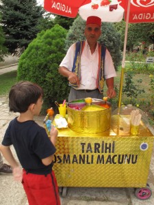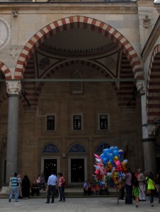 yaptıranlara dua edip, camiden çıkınca, bir müddet iç avlusunun güzelliğini seyrederek, geniş bahçesine çıkmadan, kapıdaki macuncudan, tutturan çocuklara macun alıyoruz.