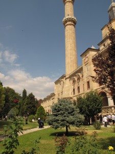 Selimiye Camii’ne göre farklı teknik ve mimari uslüpla yapıldığı hemen farkediliyor. Bu camide çini kullanımı henüz ileri boyutlara ulaşmamış ancak büyük hat yazıları anlamını okuyamasanız bile sizi etkiliyor.