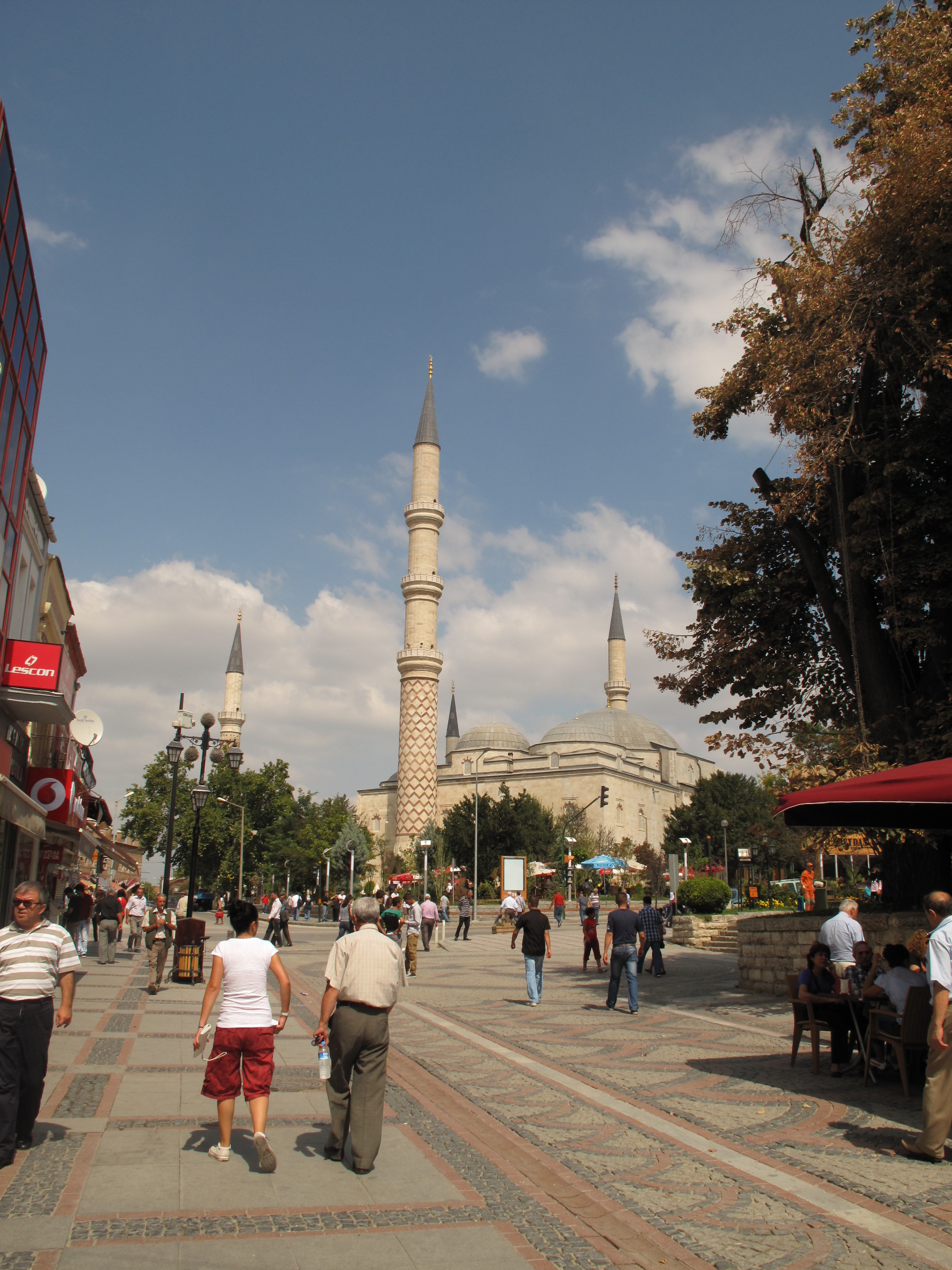 Artık acıktığımız için Üç Şerefeli Camii’i gezmiyoruz ve Edirne’nin ana turistik caddesi olan Saraçlar Caddesi’ne giriyoruz. Burası yayalaştırılmış bir alışveriş caddesi. Çeşitli lokantalar ve dükkanlar