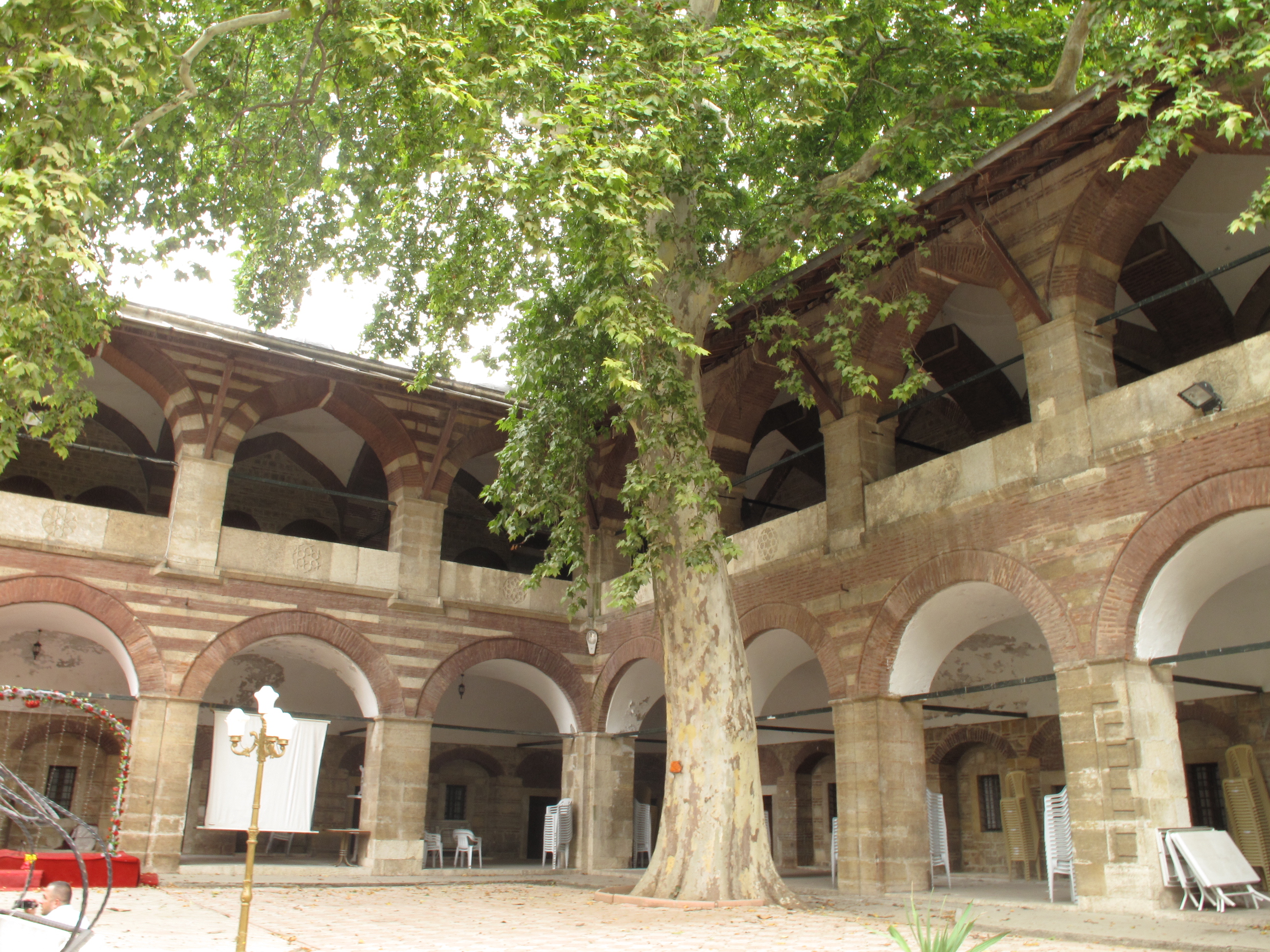 Yediğimiz kadarını ayrıca paket ettirip, bir o kadar da eşe dosta alıyoruz. Ciğerlere gözümüz gibi bakıp arabaya güzelce yerleştirdikten sonra Rüstem Paşa Kervansarayı ‘na göz atmak istiyoruz. Bir iki butik otel dışında doğru düzgün kalacak otel göremediğimiz Edirne’de, en kalmaya münasip yer haline getirilmiş Rüstem Paşa Kervansarayı. Kanuni’nin sadrazamı Rüstem Paşa ( Mihrimah Sultan’ın eşi ) tarafından, 1561 de Mimar Sinan’a yaptırılmış. Dönemin beş yıldızlı otellerinden olan bu kervansaray 102 odalı. Otel idaresi, iç avlusuna göz atmamıza izin veriyor.