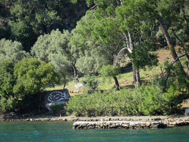 Koyun girişinde kayanın üzerindeki Bedri Rahmi’nin balık resmi, Azra Erhat’ın kelebek mozaiği ve tepelerindeki yamaçlarda süslemeleri ile Likya Kral mezarları, sanat tarihinden kültürel bir pasaj sunuyor adeta. Göcek’in bu en kendine münhasır koyundan, Bedri Rahmi’nin balığına bir el sallayıp, suyun her mavisinde Azra Erhat’ı yad edip, yamaçlardaki kralların çoktan bu diyardan yok olup gitmiş anılarına bir saygı selamı göndererek, ayrılıyoruz.