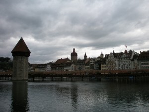 Luzern, yine Rigi dağının eteğinin başka bir yüzünde, İsviçre‘nin en turistik şehirlerinden biri. Sembolü Reuss Nehri üzerinde, 14.yy.da inşaa edilen, Kapellbrrücke ( Şapel Köprüsü ). İnsan eli ile yapılmış en uzun ahşap köprü olma özelliğine sahip. Tam ortadaki kulenin hapishane olmak amaçlı yapıldığını öğrenince çok gülüyorum, beni buraya hapsetsinler başka ne isterim.