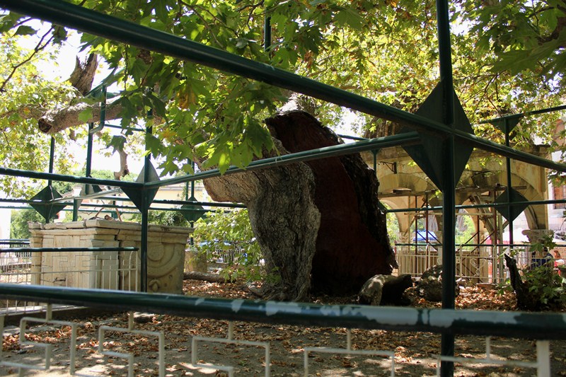 Gelmediğimiz dört senede bir şey değişmemiş; ağaç 2000 küsur yıldır yerli yerinde, etrafındaki Osmanlı yapıları aynı haraplıkta, kale hala restore edilmemiş, eski Roma agorasında aynı otlar yine bürümüş.