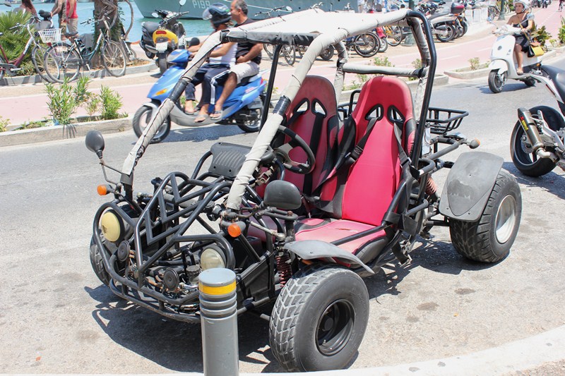 Otele dönerken, genç bir turist çiftin, adada bolca bulunan böcek arabalardan birini elleri ile çekiştirerek park ettiklerini görüyoruz. Motosiklet-araba bozması bu araçlar, adanın gülen yüzü. Havadar olmaları nedeni ile çoğunlukla turistlerce ve uluslarası ehliyet getirmemiş olan Türklerce tercih ediliyor.