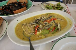 Burada deniz ürünleri çeşitleri çok seçenekli olmasa da, pişirme teknikleri daha farklı, daha soslu. Özellikle hardal soslu hamsi tabağı, domates sosunda haşlanmış midye ve deniz ürünlü spagetti mutlaka denenmesi gereken ilk üç. Fiyat ise, daha önce ödediğimizden de az geliyor, 46 €.