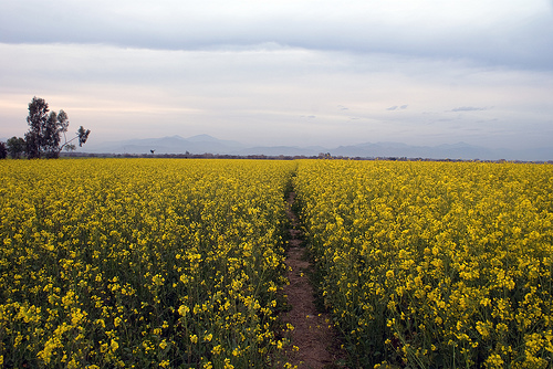 Israrla uyumamaya ve tüm açlığına rağmen konuşmaya devam eden Çaka, her bir noktası ekili arazilere ve sarı sarı hardal tarlalarına fazla direnemiyor. İnce bir kilise çan kulesi ile kendini belli eden küçük köyler, kasabalar geçiyoruz. Yol boyu tarlalar ve haralar var. Yer gök sarı hardal çiçekleri ile kaplı. Fransız hardalı almadan dönmemek farz oluyor artık.