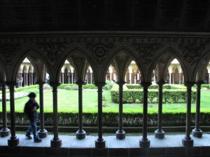 Mont St.Michel Manastır Kilisesi, hem bir Benedictine manastırı, hemde 73 yıl boyunca politik bir hapishane. Manastırın üç katı manastırlık hiyerarşisini yansıtıyor. Keşişler üst kattaki kapalı bir dünyada yaşıyorlar ( manzara, ufuk, sonsuz bir görüşe sahip nasıl bir kapalılıksa). Başrahip soylu konukları orta katta ağırlıyor, asker ve hacılar ise en alt katta kabul ediliyor. Bugün hediyelik eşya dükkanı olan imarethane de burada.