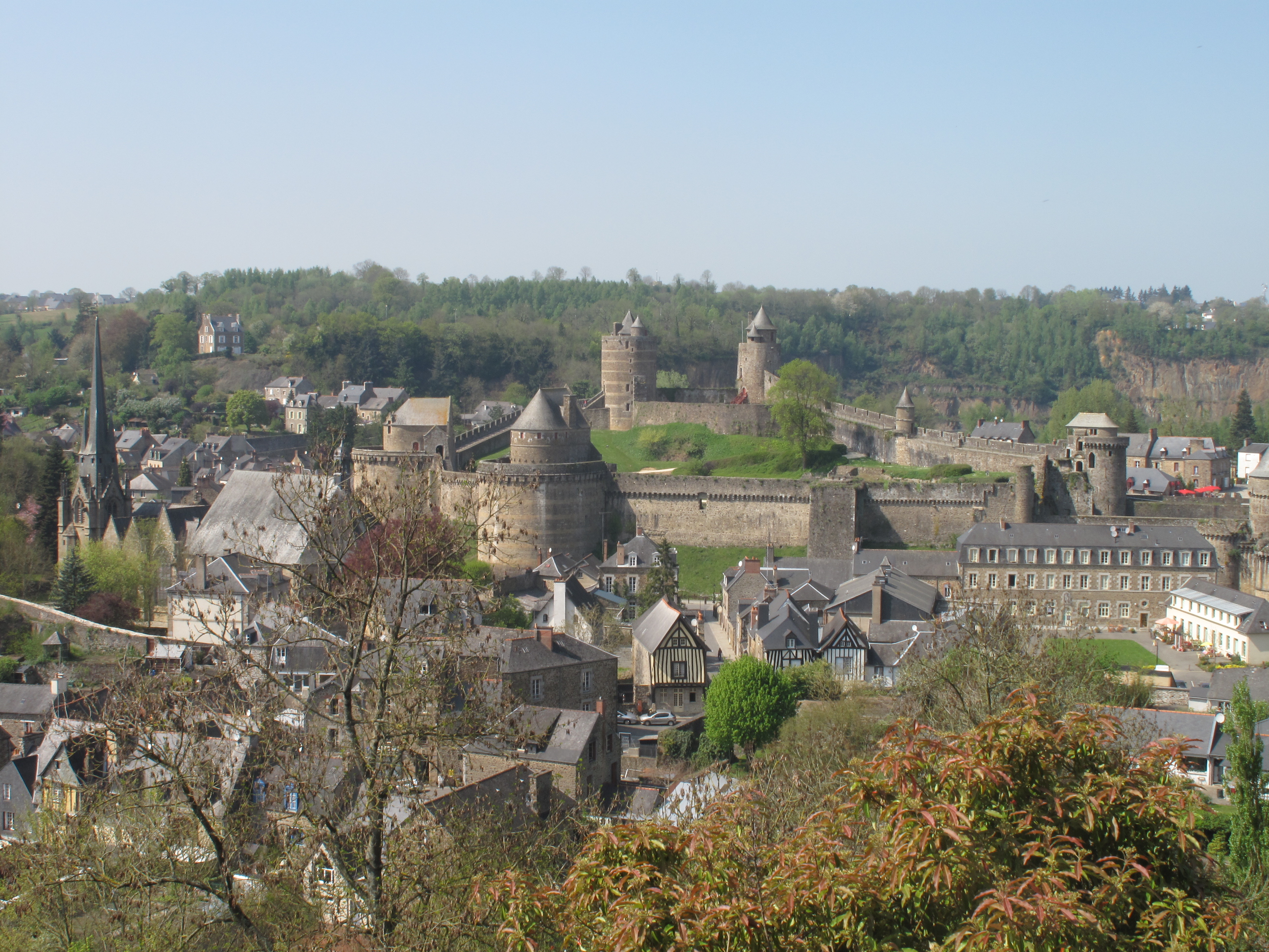 Geldiğimiz D175 yolundan kısa bir mesafe saparak Fougeres kasabasına bir göz atalım istiyoruz. Bretanya ‘nın korunmuş pek çok ortaçağ kale ve kasabasından biri olan Fougeres, Nançon nehrine bakan bir tepede. Aşağıdaki vadide, 11-15.yy.dan kalma Chateau de Fougeres bulunuyor. Tepedeki yerleşimin adı ise ‘’Haute Ville ‘’.