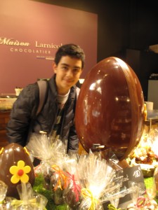 St.Anne’e kadar olan bölge aynı zamanda alışverişin kalbi. Tüm mağazalar ve hizmet burada.R ue Jean jaures’den Place St.Anne’e doğru ilerlerken, açık olduğuna hayret ettiğimiz, daha doğrusu paskalya nedeni ile açık olan bir çikolatacı ile karşılaşıyoruz.