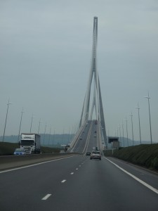 Dönüşte vaktimiz kalırsa uğramayı planlayıp yolumuza devam ediyoruz. Le Havre’a yaklaşınca, eğimi çok yüksek bir köprü geliyor karşımıza,Tanquerville köprüsü.Uzakta sağda, endüstri bölgeleri ile petrrol rafinerileri görülüyor. Köprünün eğimi, altından petrol tankerlerinin geçmesi için hesaplanarak yapılmış. Bu arada otobanlara olduğu gibi köprülere de para ödeniyor, bu bedel 0.5 euro dahi olsa alıyorlar.