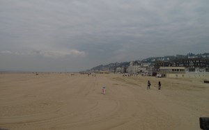 Mer’de durup, neredeyse gözün göremediği genişlikteki plajlara bakıyoruz. Trouville, 19.yy.da Gustave Flaubert ve Alexandre Dumas gibi yazarların dikkatini çekmesi ile parlamış.