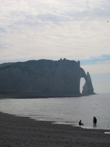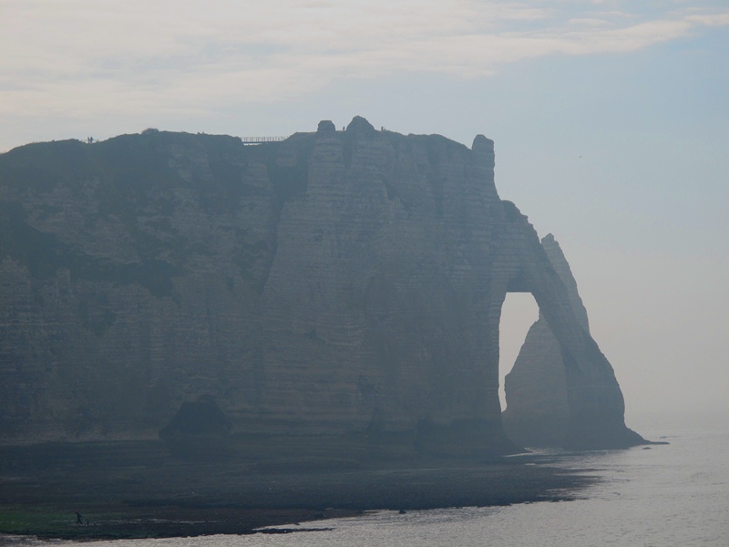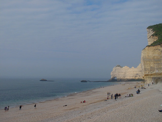 Cote d’Albatre ( Kaymaktaşı Sahili ) olarak adlandırılan bu bölge falezleri ile ünlü. Sahil şeridine karakterini veren tebeşirli yamaçlar ve bulanık sular. Sol tarafımızda gördüğümüz ise bu bölgenin en tanınan falezi, ünlü Fransız yazar Guy de Maupassant tarfından hortumunu suya sokmuş bir file benzetilmiş ve gerçekten öyle görünen, Falez Aval.( Falaise d’Aval)