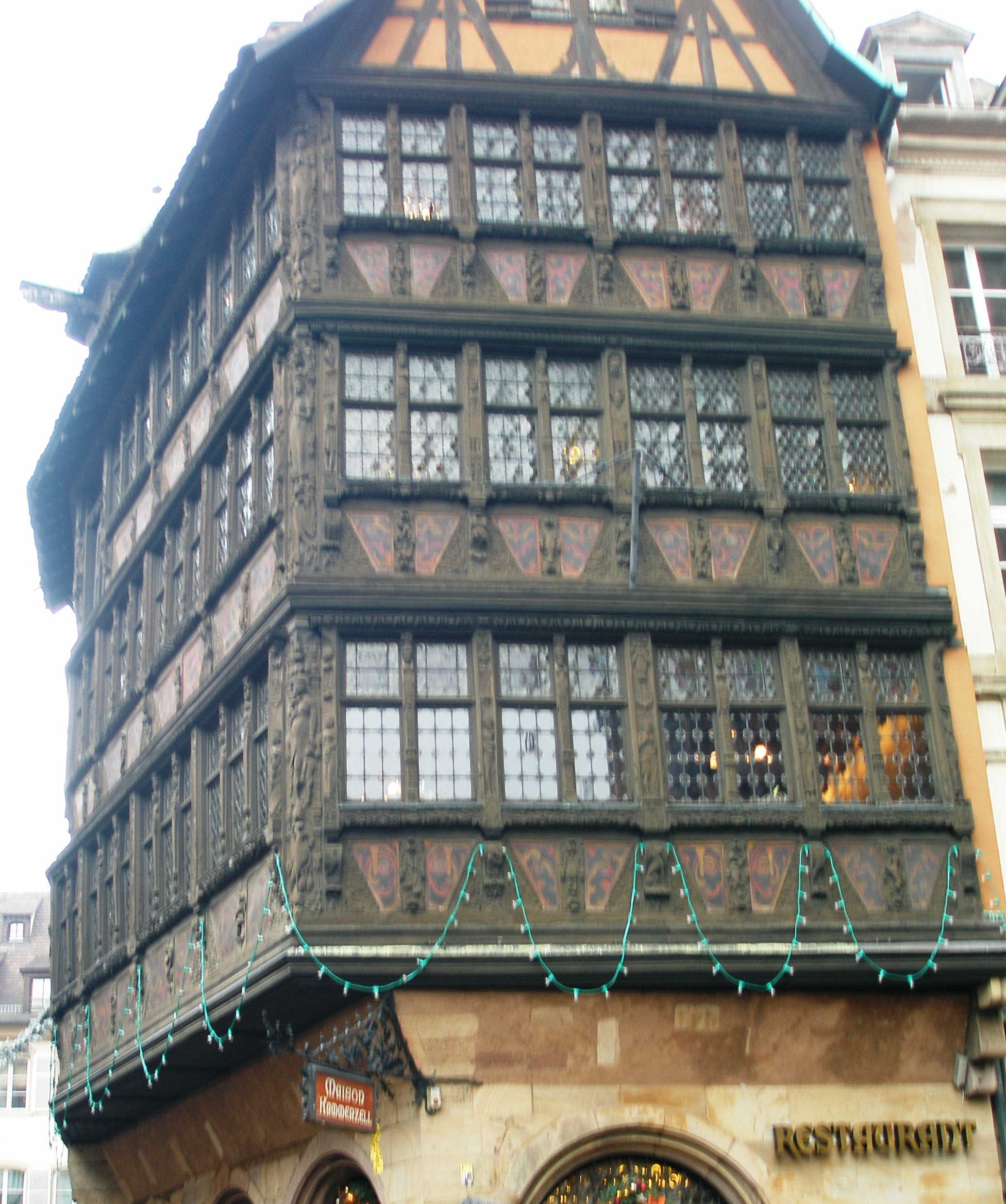 Yemek için Katedral meydanındaki Maison de Kammerzell, dış görünüşünün etkileyiciliğinden dolayı çok cazip görünüyor olsa da, çok talep gören bir yer olduğu için, rezervasyonsuz 7 kişilik yer bulmak mümkün değil. Fazla vakit kaybetmemek adına gözümüze çarpan ilk kafede ayak üstü geçiştiriyoruz.