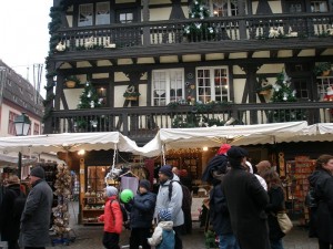 Kleber Meydanı‘ndan, Rue des Grandes Arcades Caddesini takip ederek, Place Gutenberg‘e gelip, oradan sola dönünce de, Place de la Cathedrale ‘e çıkıyoruz. Kısa mesafelerde, iç içe sayılabilecek meydanlar. Noel Pazarı, sabah olduğu için acele etmeden yavaş yavaş açılıyor.